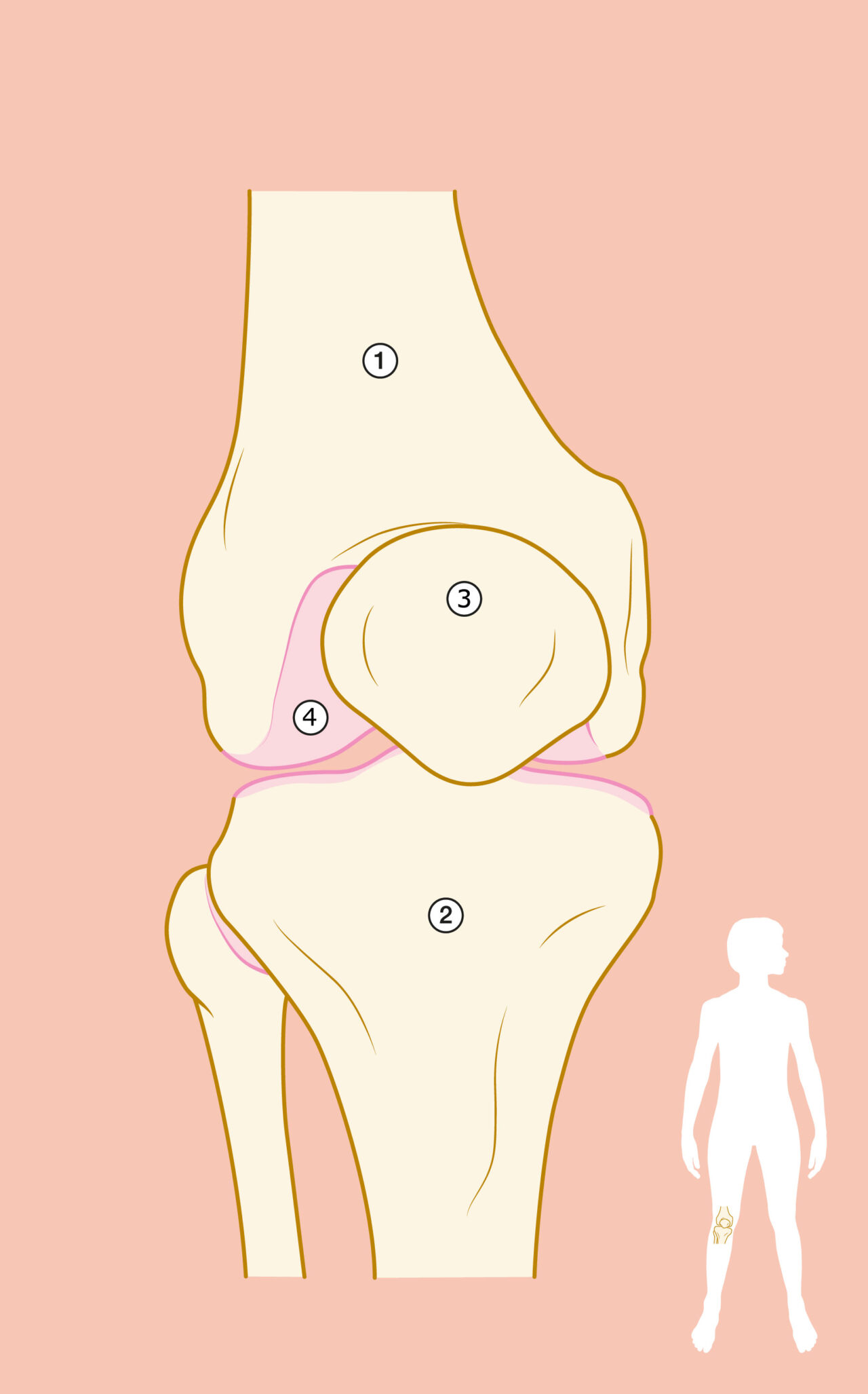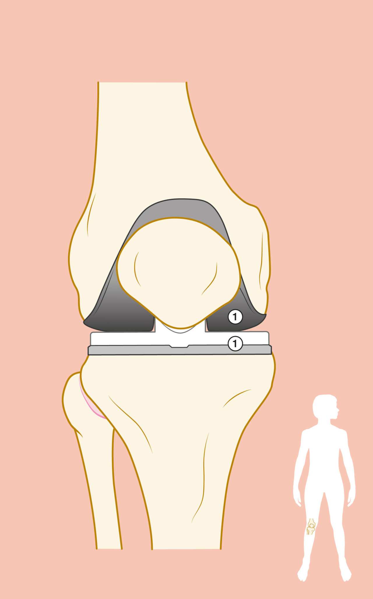 De nieuwe knie vervangt uw eigen slechte knie.1. Knieprothese
