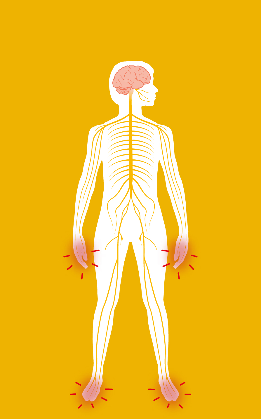 Als de bloedvaten niet goed werken, stroomt er te weinig bloed naar de zenuwen.