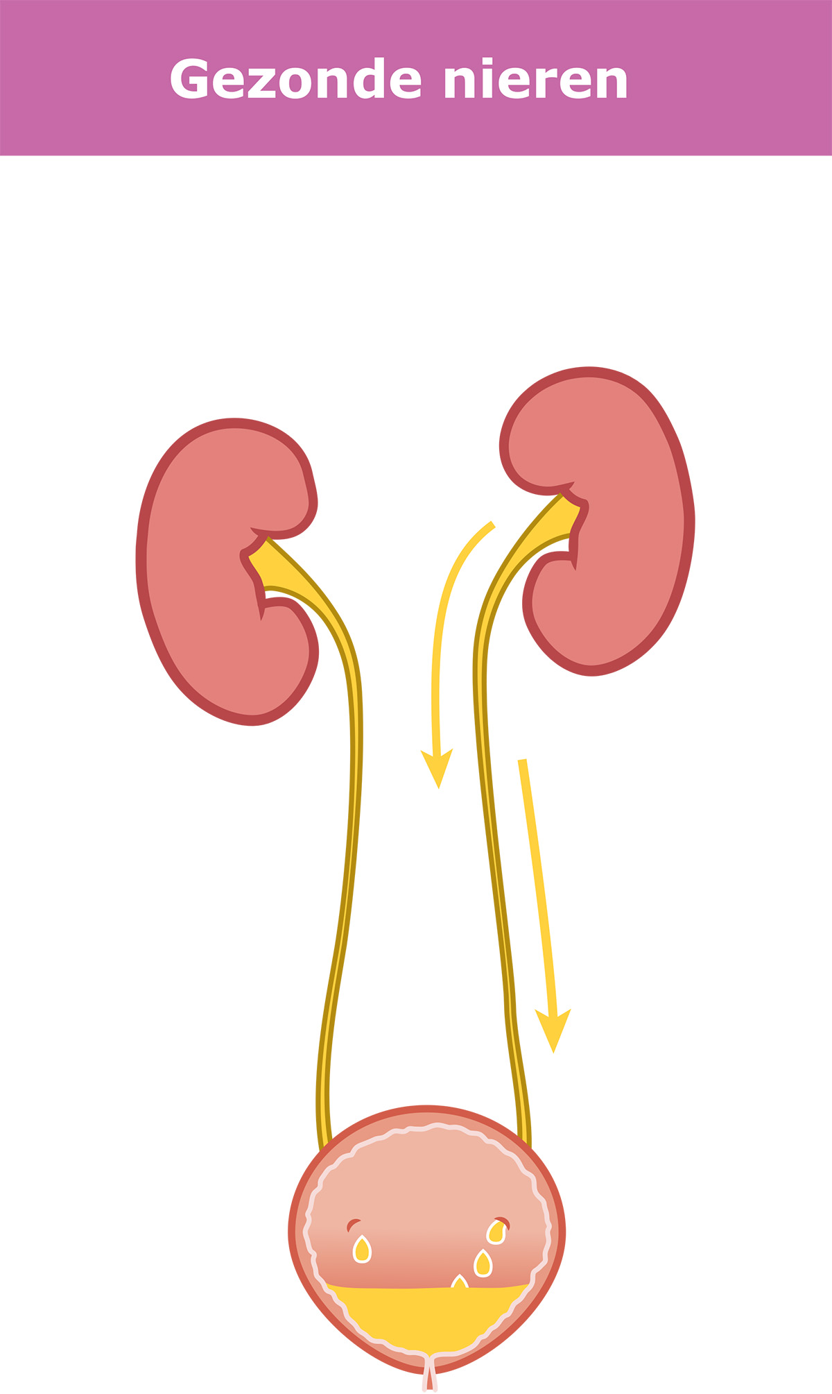De urine loopt naar de blaas.