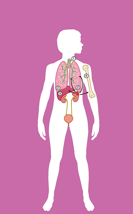 Soms gaat de nierkanker ook naar andere plekken in het lichaam.