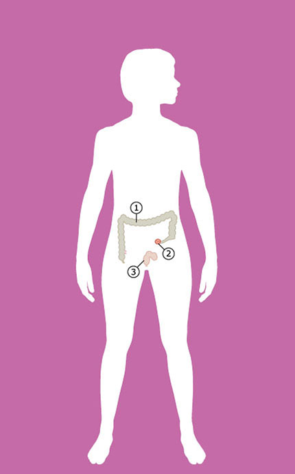 Je hebt een dunne darm, een dikke darm en een endeldarm.