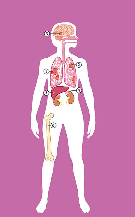 Soms gaat de longkanker ook naar andere plekken in het lichaam.
