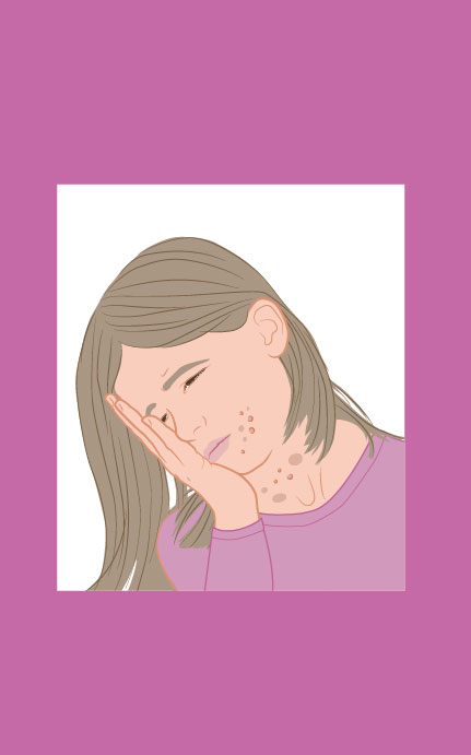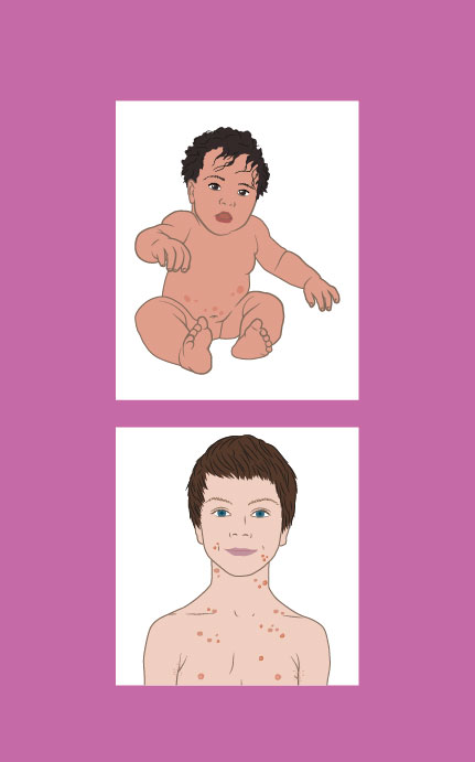 Soms zijn er ook sproetjes, vooral in oksels en liezen.