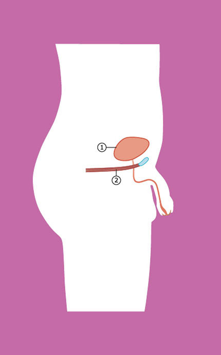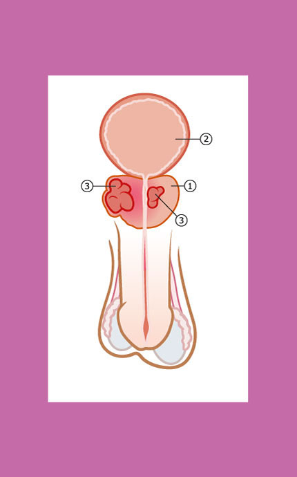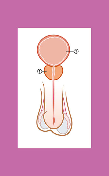 De prostaat ligt onder de blaas. Hij is zo groot als een walnoot.