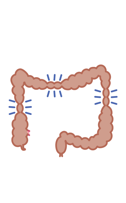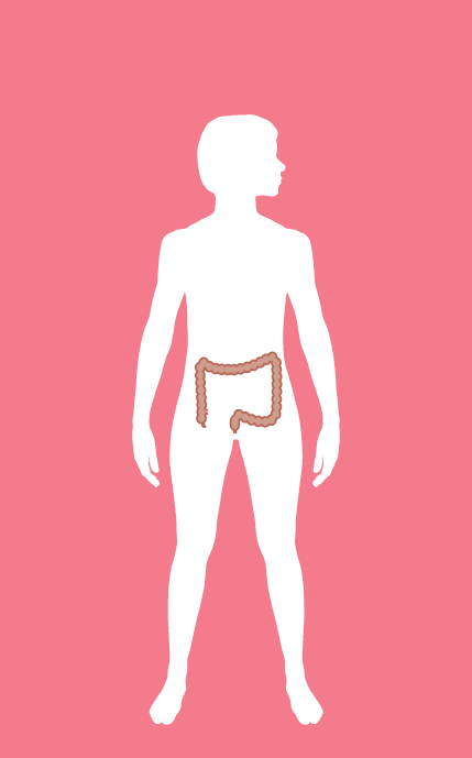 Het eten gaat van de maag naar de darmen. De darm is een kronkelende buis die het eten kneedt en naar beneden duwt. Je hebt een dunne en een dikke darm. Samen zijn ze een paar meter lang.