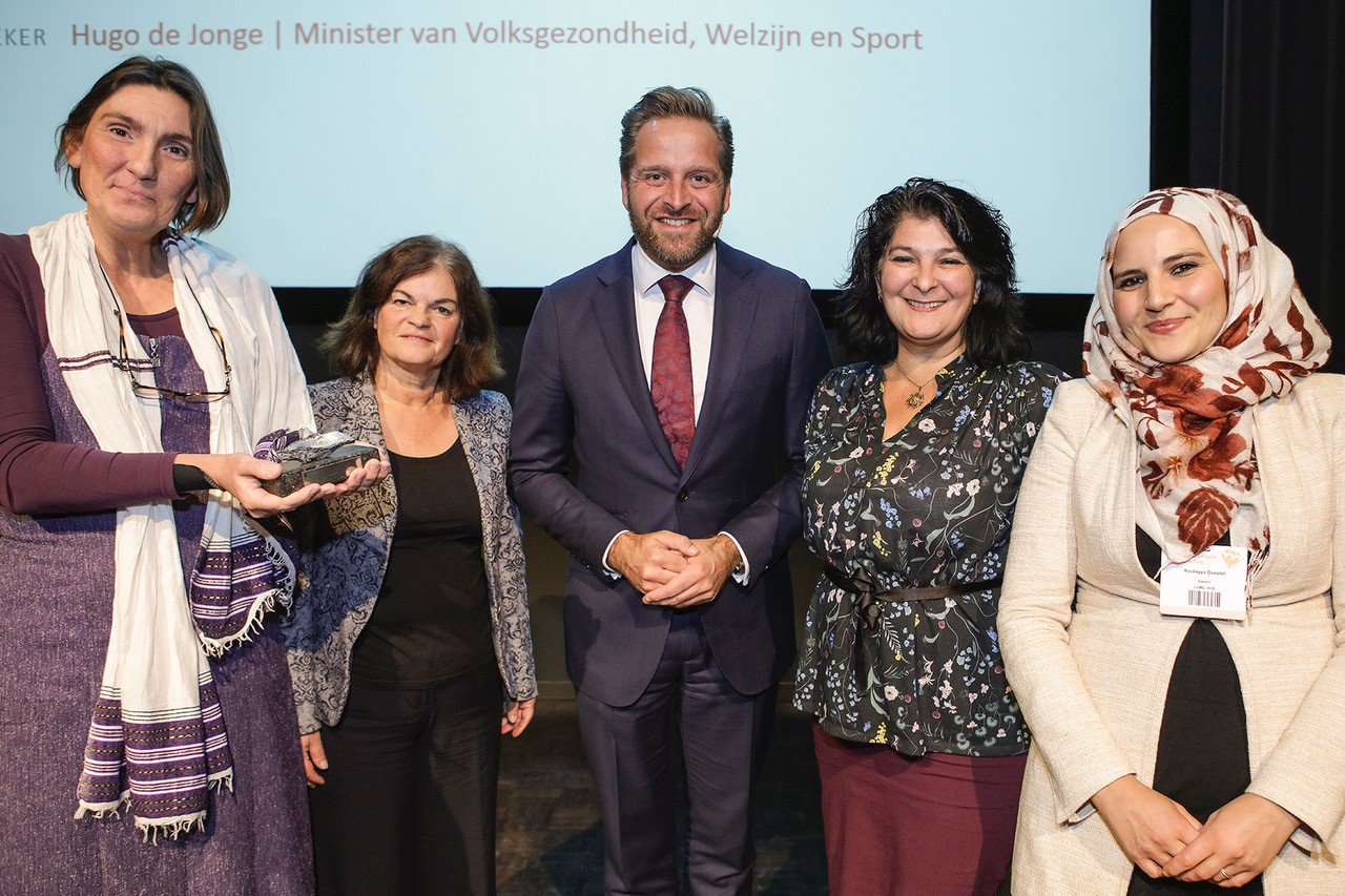 "Een goed voorbeeld voor andere projecten. Daarnaast is Pharos sterk in de implementatie van de projectresultaten.” ZonMw heeft het project In gesprek over leven en dood bekroond met een Parel.